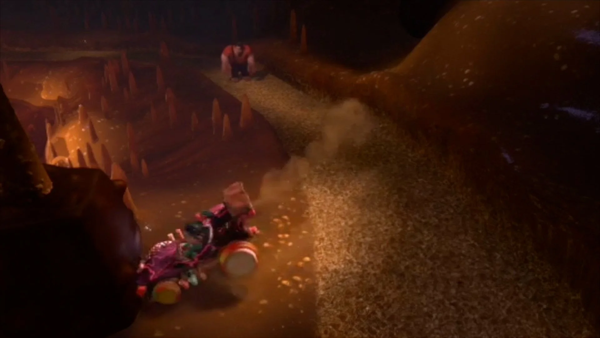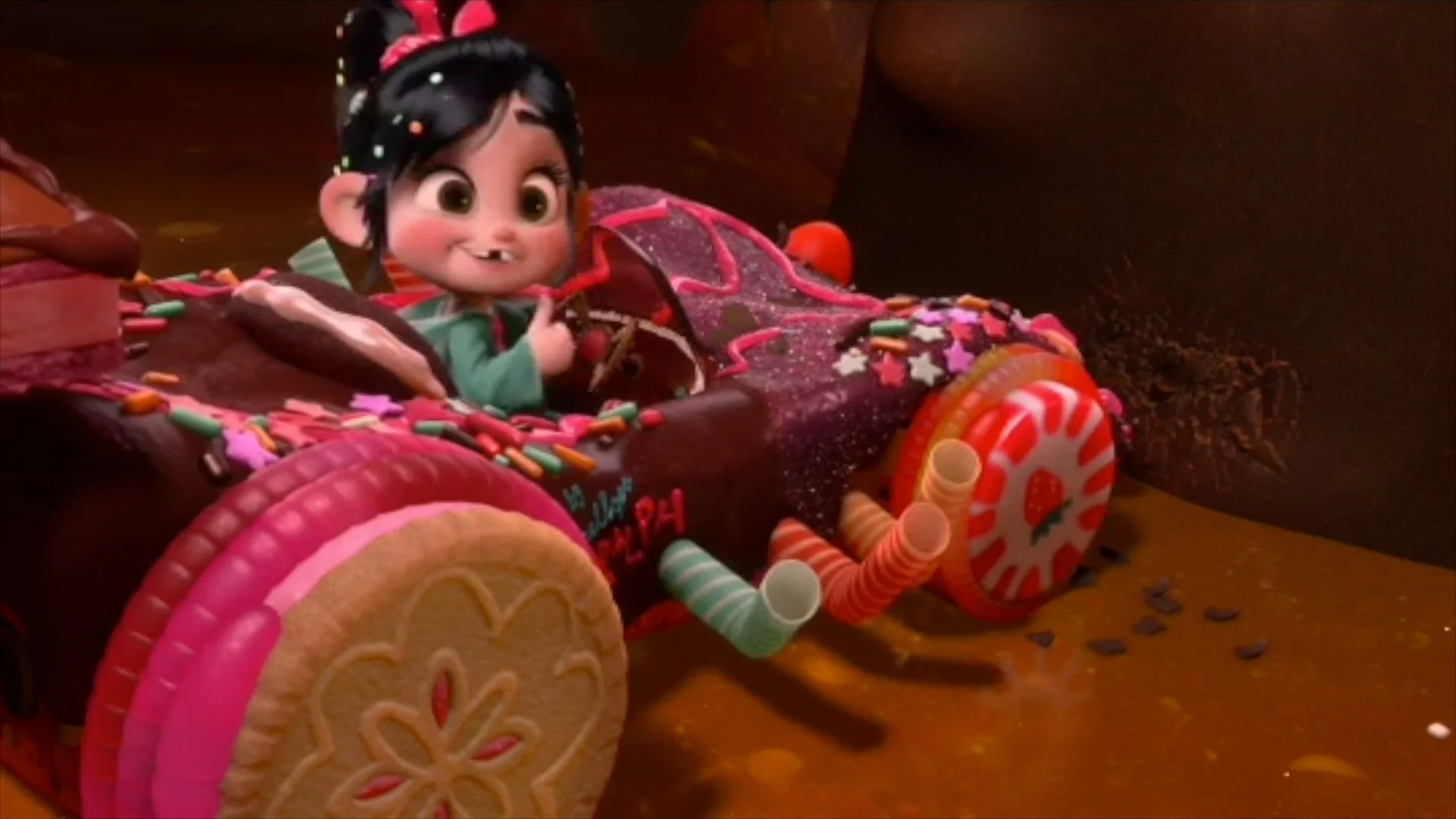 Shot: Ralph Teaching Vanellope to Drive the Candy Kart