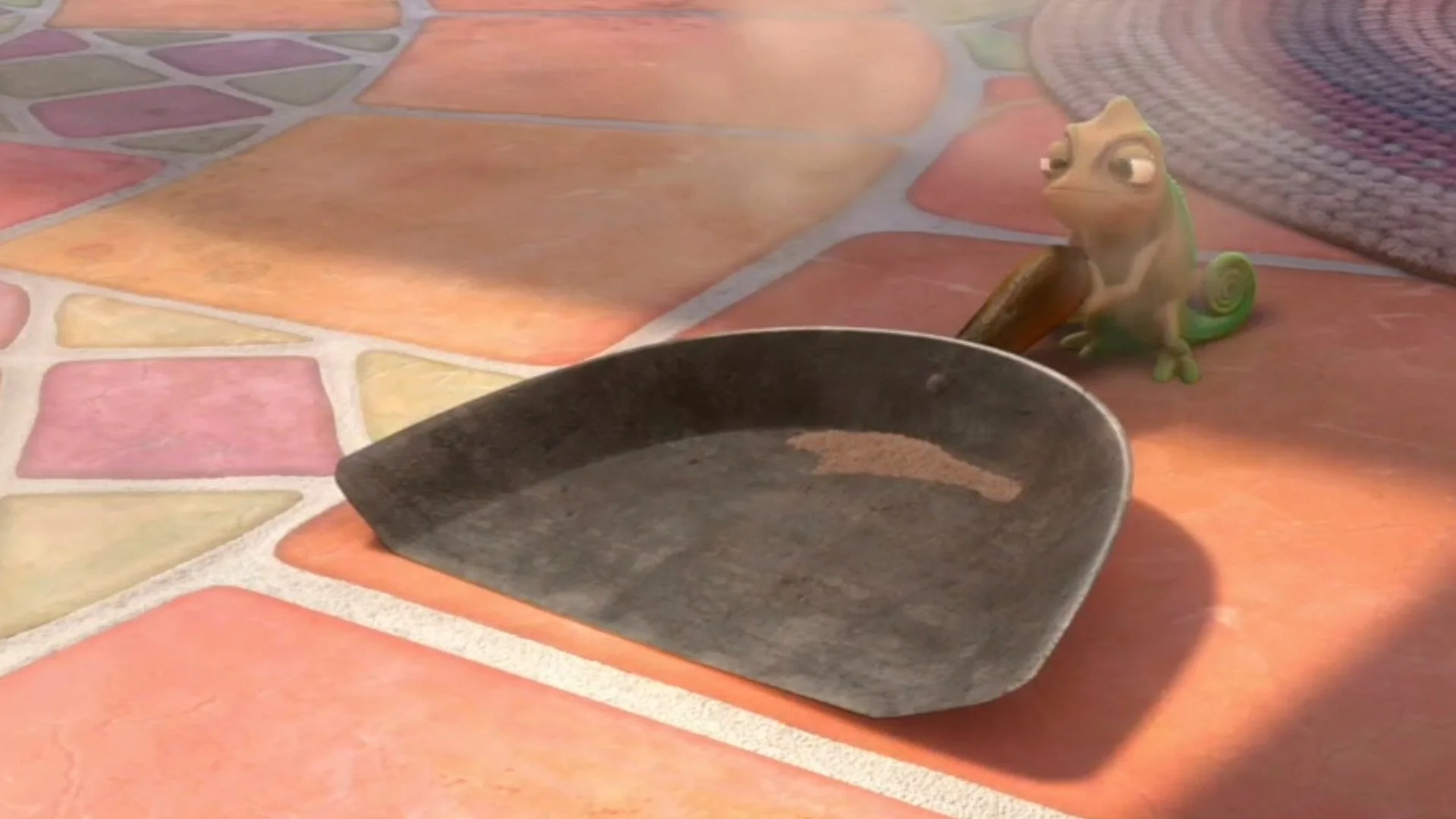 Lit and composited the shot to match the warm tower interior. I pitched the idea of having the dust obscure everything except Pascal’s eyes, giving the gag a stronger visual punch—an idea approved by leadership and carried through to final. Developed a custom RenderMan shader for Pascal’s dusty look and executed a comped wipe from clean to dust-covered to heighten the comedic timing and support the character interaction.