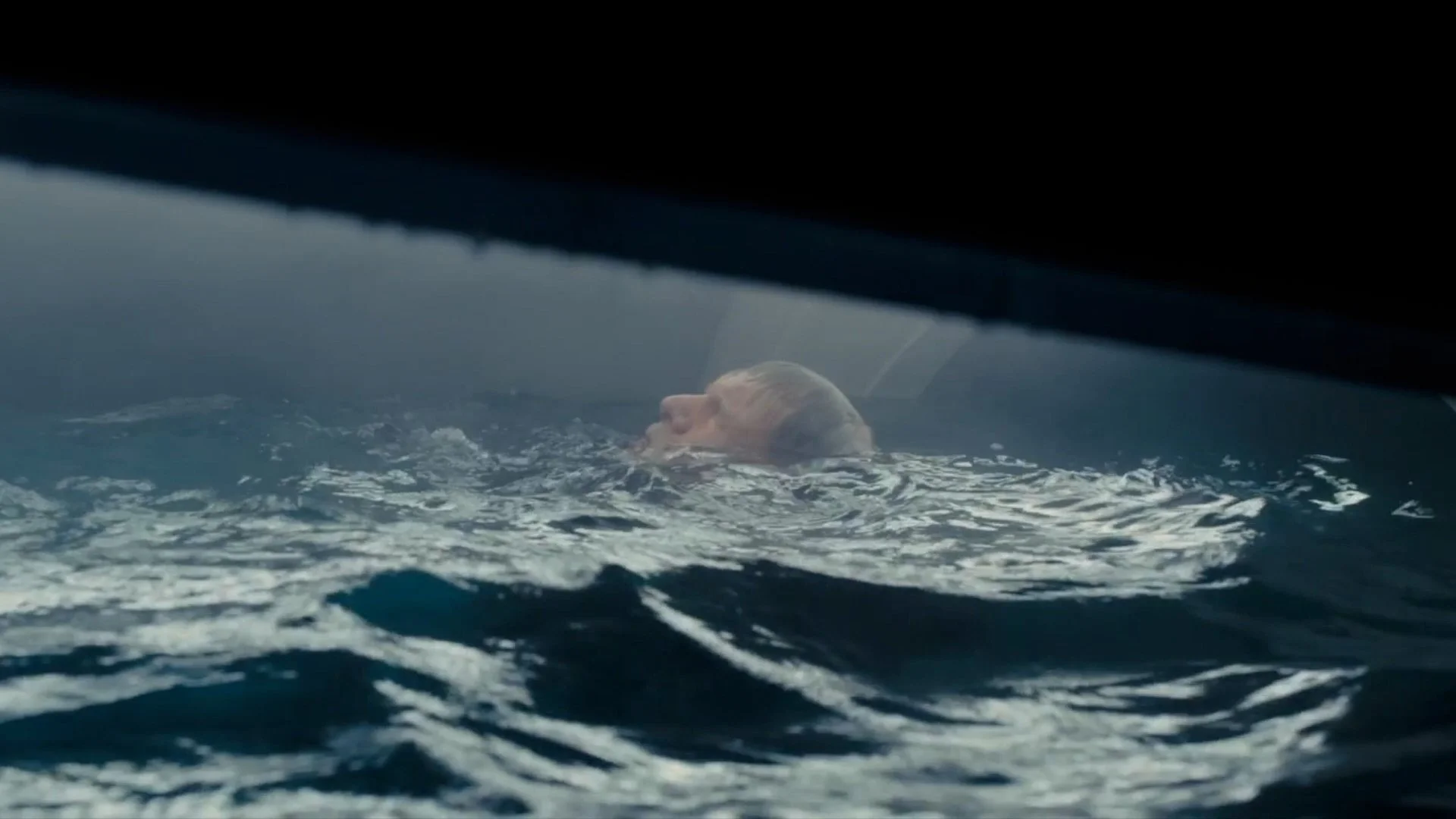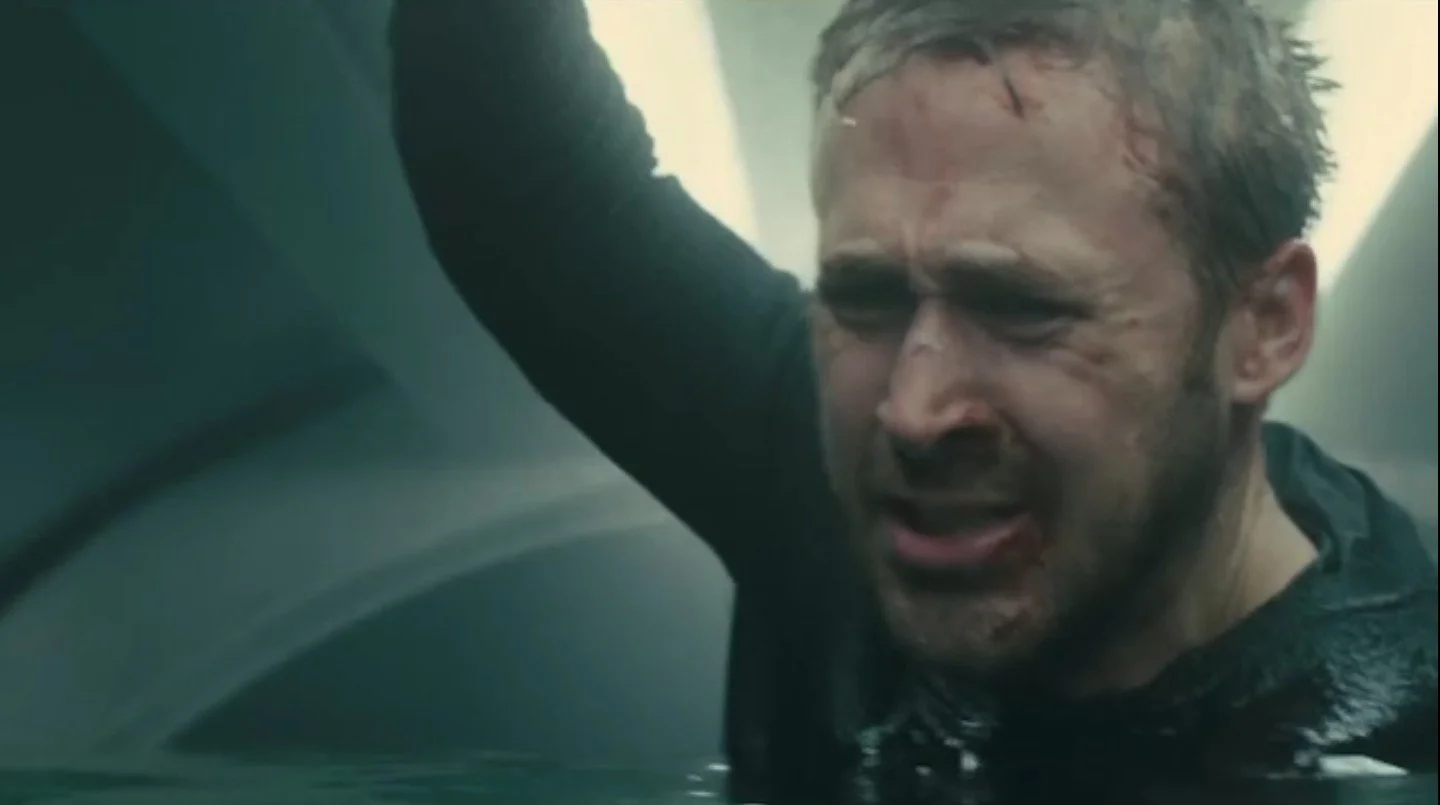 Shot: Officer K (Ryan Gosling) turns inside ocean-submerged Spinner