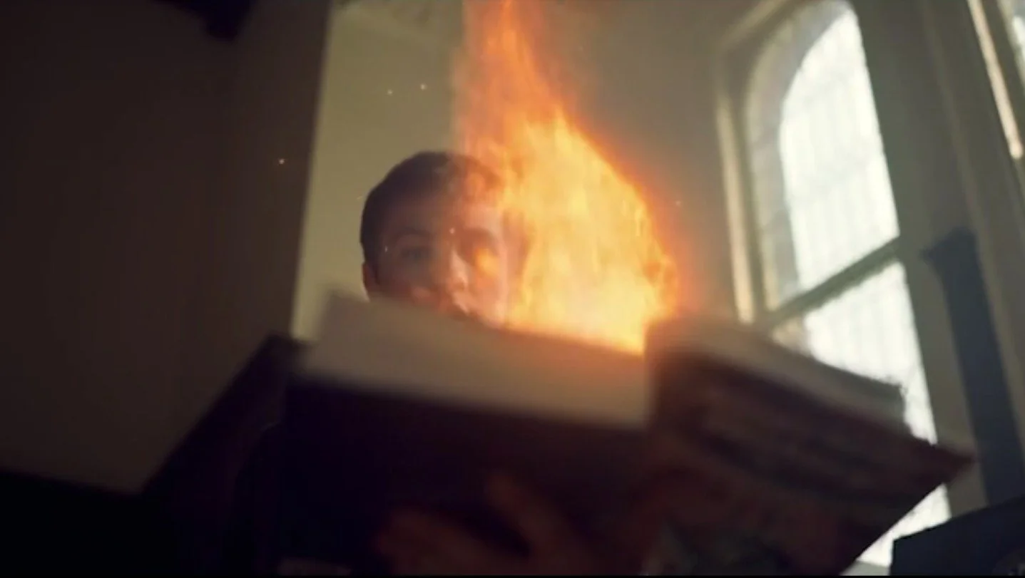 Shot: Tyler Locke Holds Igniting, Flaming Book